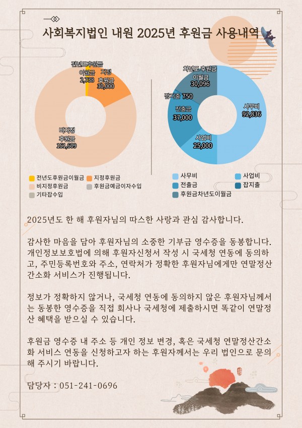 2025년 사회복지법인 내원 후원금 수입 및 사용결과 보고