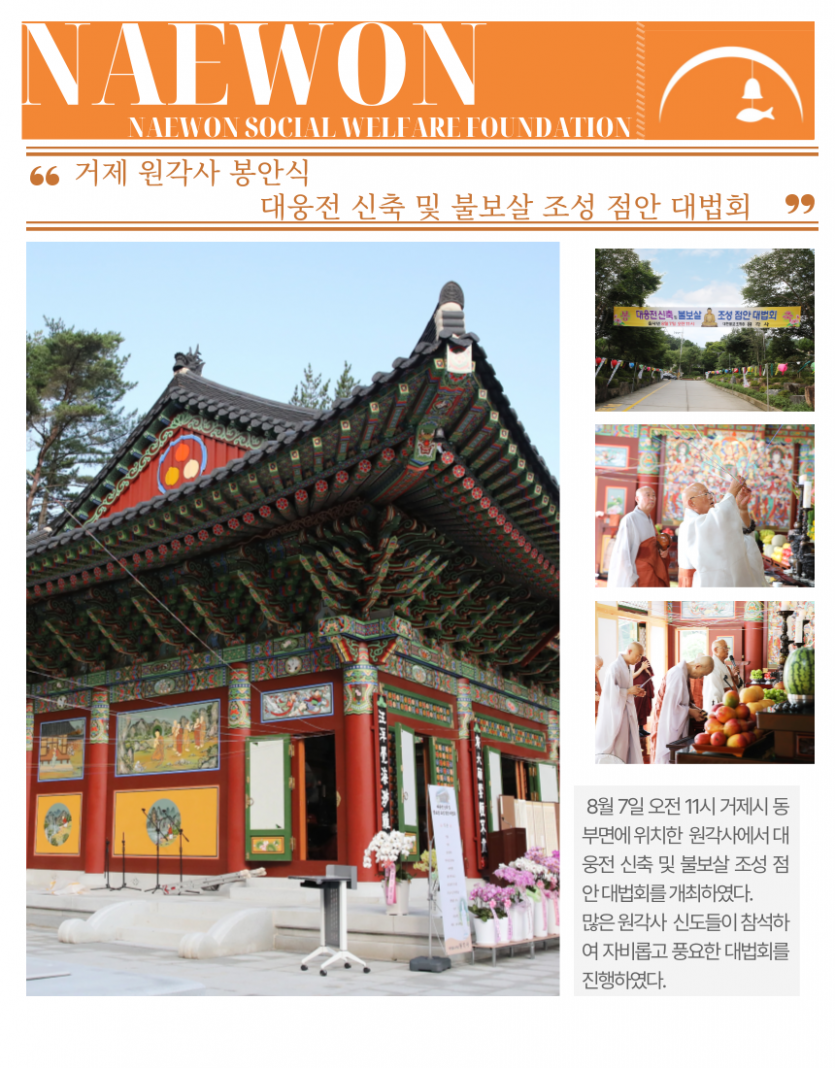 원각사 대웅전의 낙성은 거제 불교 중흥의 초석을 다지고, 신도들의 수행 공간을 확충하는 계기가 될 것입니다.